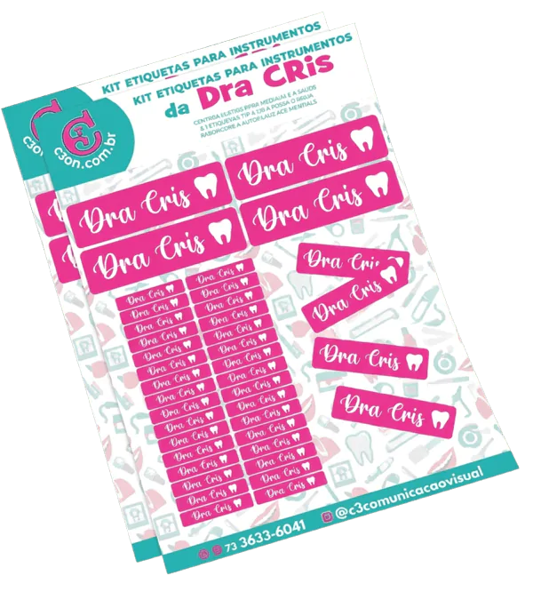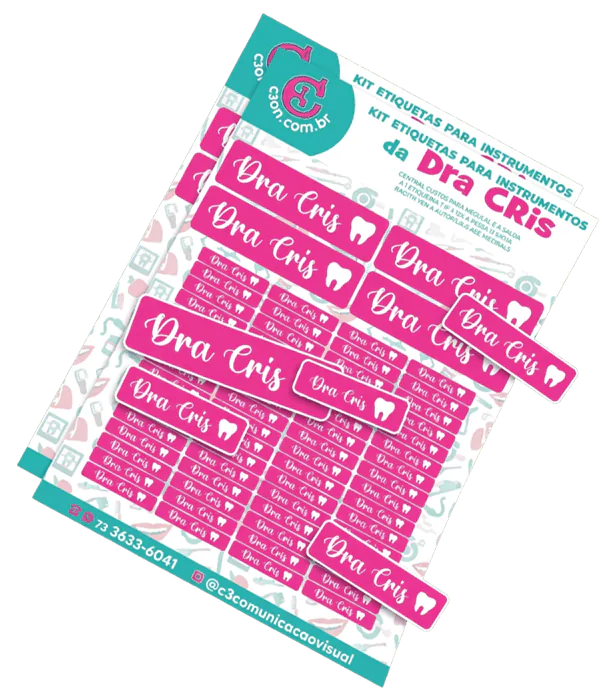 Etiquetas de 3cm são indicadas para instrumentos mais finos. As de 7cm são ideais para instrumentos maiores, estojos e bandejas.